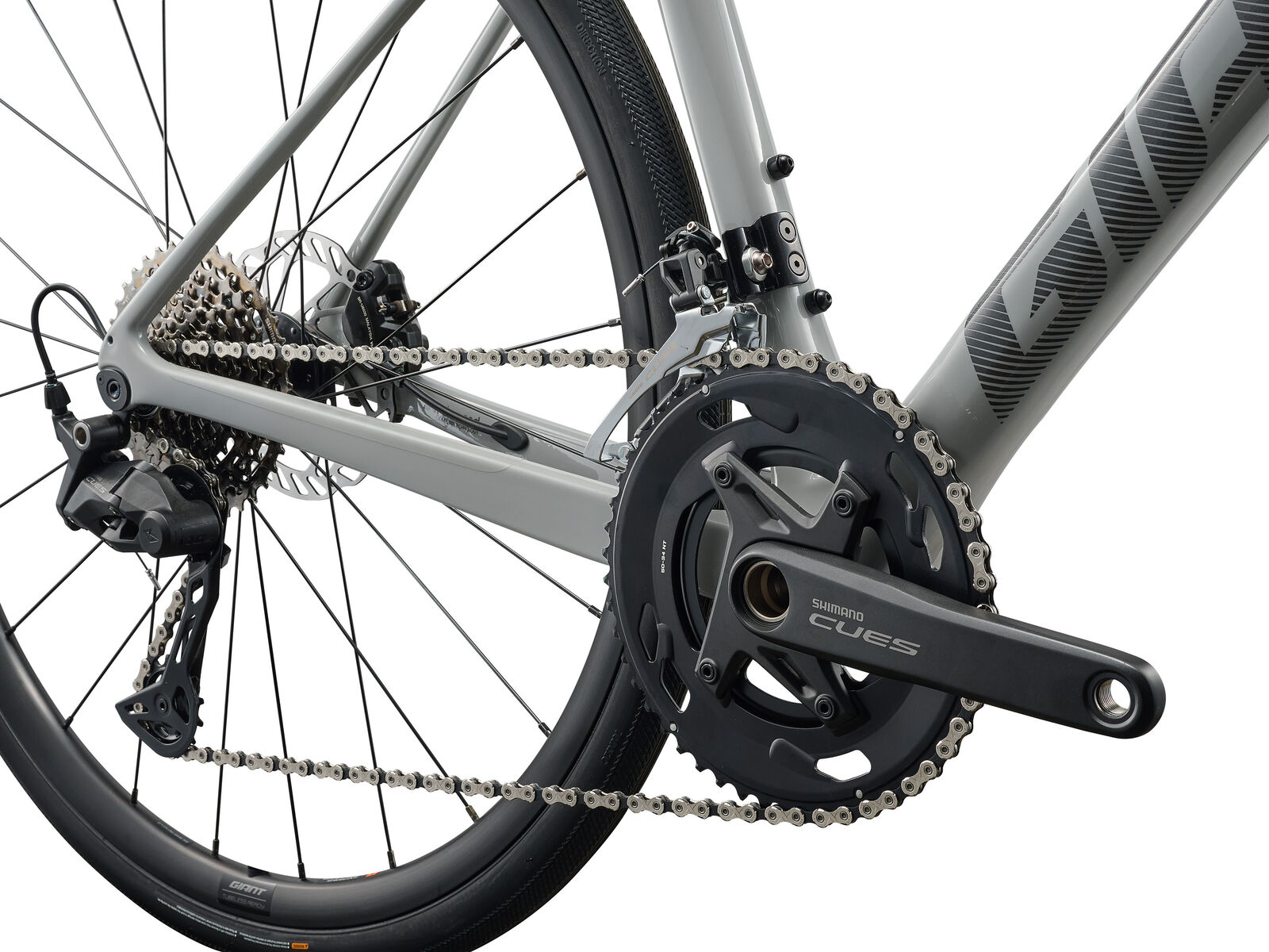 Style | With effortless efficiency and quiet compliance, this lightweight endurance road machine helps you ride stronger and longer. The composite frame and purpose-built components smooth out rough roads and minimize fatigue. Advanced Composite Technology - Giant's High Performance Grade raw carbon material is used to produce this custom frame material in our own composite factory with a high stiffness-to-weight ratio. The front triangle of these framesets is assembled and molded as one continuous piece in a proprietary manufacturing process called Modified Monocoque Construction. Compact Road Design - Introduced by Giant with the professional Team ONCE in the 1990s, Compact Road revolutionized the look and feel of high-performance road bikes forever. A downward sloping toptube (from the headtube to the seattube) creates smaller front and rear triangles for a lighter, stiffer bike. It also makes it easier for riders of all sizes to have a perfect fit. D-Fuse Technology - The D-Fuse seatpost and handlebar were designed to function as a system, absorbing road shocks and vibrations so you can ride farther, faster. Tubeless System - Fewer flat tires. Greater traction. Less rolling resistance and a smoother, faster ride. Giant's Tubeless System makes it easier than ever to experience all these benefits. OverDrive Aero - Found inside the head tube of the Defy, Propel and TCR ranges, the D-shaped fork steerer tube and corresponding spacers provide an extremely aerodynamic, easier to service system of internally routed brake and derailleur cables. Specifications:Sizes XS, S, M, M/L, L, XLColours Good Gray Frame Advanced-grade Composite, 12x142mm thru-axle, disc Fork Advanced-grade Composite, full-composite OverDrive steerer, 12x100mm thru-axle, disc Shock Handlebar Giant Contact SL D-Fuse XS:404/380mm, S:404/380mm, M:424/400mm, M/L:424/400mm, L:444/420mm, XL:444/420mm Grips Stratus Lite 3.0 Stem Giant Contact AeroLight XS:80mm, S:90mm, M:100mm, M/L:100mm, L:110mm, XL:110mm Seatpost Giant D-Fuse, composite, 14mm offset Saddle Giant Approach Pedals platform pedal [GCS,GTS], [all other GSC] Shifters Shimano CUES U6030 Front Derailleur Shimano CUES U6030F Rear Derailleur Shimano CUES U6020-10 Brakes Shimano BR-U6030 hydraulic, Giant MPH rotors [F]160mm, [R]160mm Brake Levers Shimano CUES U6030 Cassette Shimano CS-LG400, 11x39 Chain KMC X11 Crankset Shimano FC-U6030-2, 34/50 XS:165mm, S:165mm, M:170mm, M/L:170mm, L:172.5mm, XL:172.5mm Bottom Bracket Shimano, press fit Rims Giant S-R2 Disc wheelset, alloy, [F]25mm, [R]25mm Hubs Giant alloy, 12mm thru-axle Spokes Sapim Tyres Giant Gavia Fondo 1, tubeless, 700x32c (33.5mm), folding Extras tubeless prepared, 40mm max tire size Max Tyre Clearance 40mm |