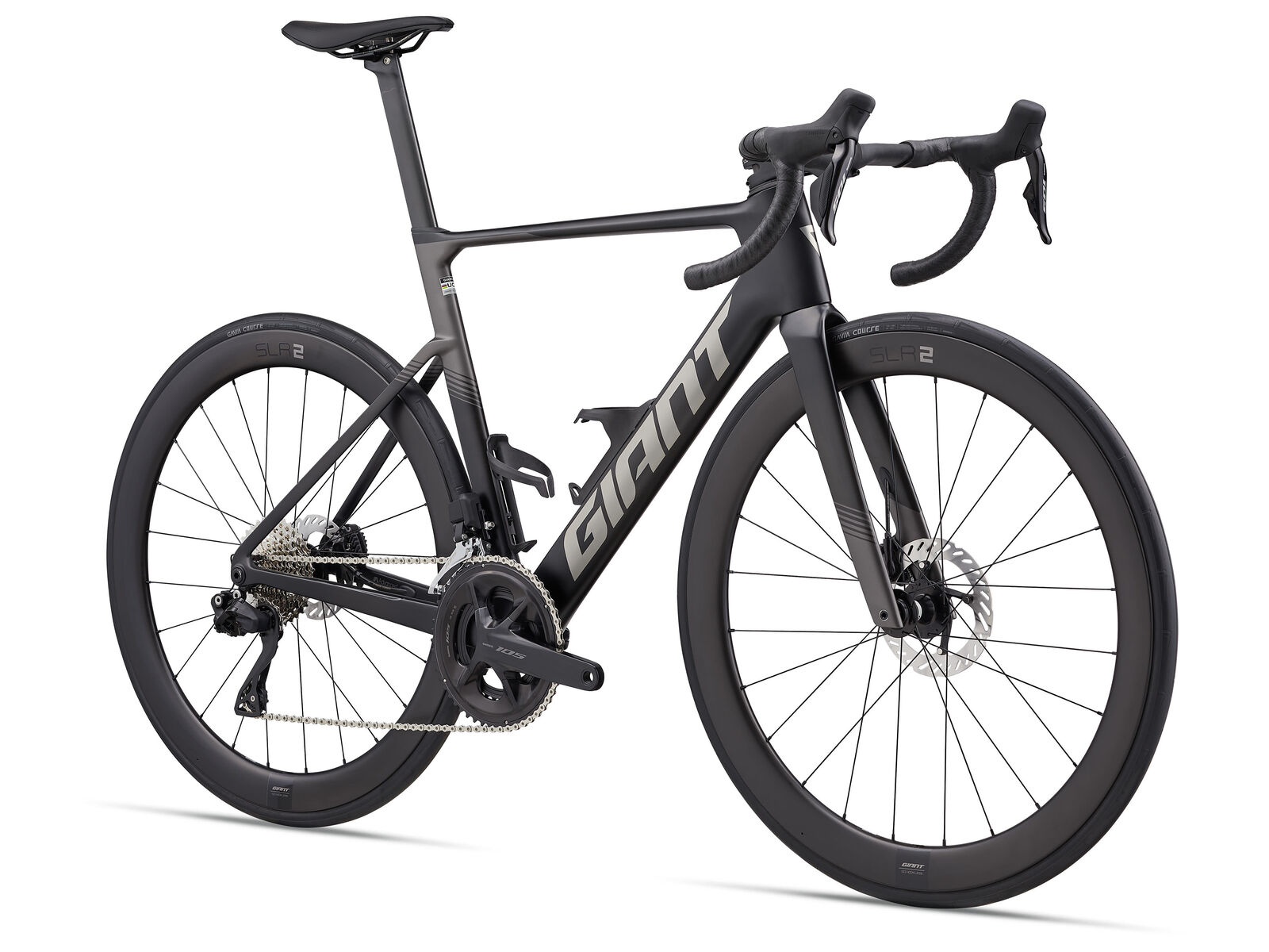 | Style | Get the most from your hard-earned pedaling power. Whether it's squeezing out more speed on solo rides or taking bragging rights in the group, the new lighter, smoother Propel Advanced makes the thrill of road speed accessible to all. Specifications:Sizes XS, S, M, M/L, L, XLColours Carbon/Stealth Chrome Frame Advanced-grade Composite, 12x142mm thru-axle, disc Fork Advanced-grade Composite, full-composite OverDrive Aero steerer, 12x100mm thru-axle, disc Handlebar Giant Contact SL Aero XS:380/360mm, S:380/360mm, M:400/370mm, M/L:400/370mm, L:420/390mm, XL:420/390mm Grips Stratus Lite 2.0 Stem Giant Contact SL Aero XS:80mm, S:90mm, M:100mm, M/L:110mm, L:110mm, XL:120mm Seatpost Giant Vector, composite, -5/+15mm offset Saddle Giant Fleet SL Shifters Shimano 105 Di2 Front Derailleur Shimano 105 Di2 Rear Derailleur Shimano 105 Di2 Brakes Shimano 105 Di2 hydraulic, Shimano RT-CL700 rotors [F]160mm, [R]140mm Brake Levers Shimano 105 Di2 hydraulic Cassette Shimano 105, 12-speed, 11x36 Chain KMC X12L-1 Crankset Shimano 105 Di2, 36/52 XS:165mm, S:165mm, M:170mm, M/L:170mm, L:172.5mm, XL:172.5mm Bottom Bracket Shimano, press fit Rims Giant SLR 2 50 Carbon Disc WheelSystem, [F]50mm, [R]50mm Hubs [F] Giant Aero Hub, CenterLock [R] Giant Aero Hub, 3-Pawl Driver, CenterLock 12mm thru-axle Spokes Sapim Tyres Giant Gavia Course 0, tubeless, 700x28c, folding Extras computer mount, water bottle cages, tubeless prepared, 32mm max tire size |