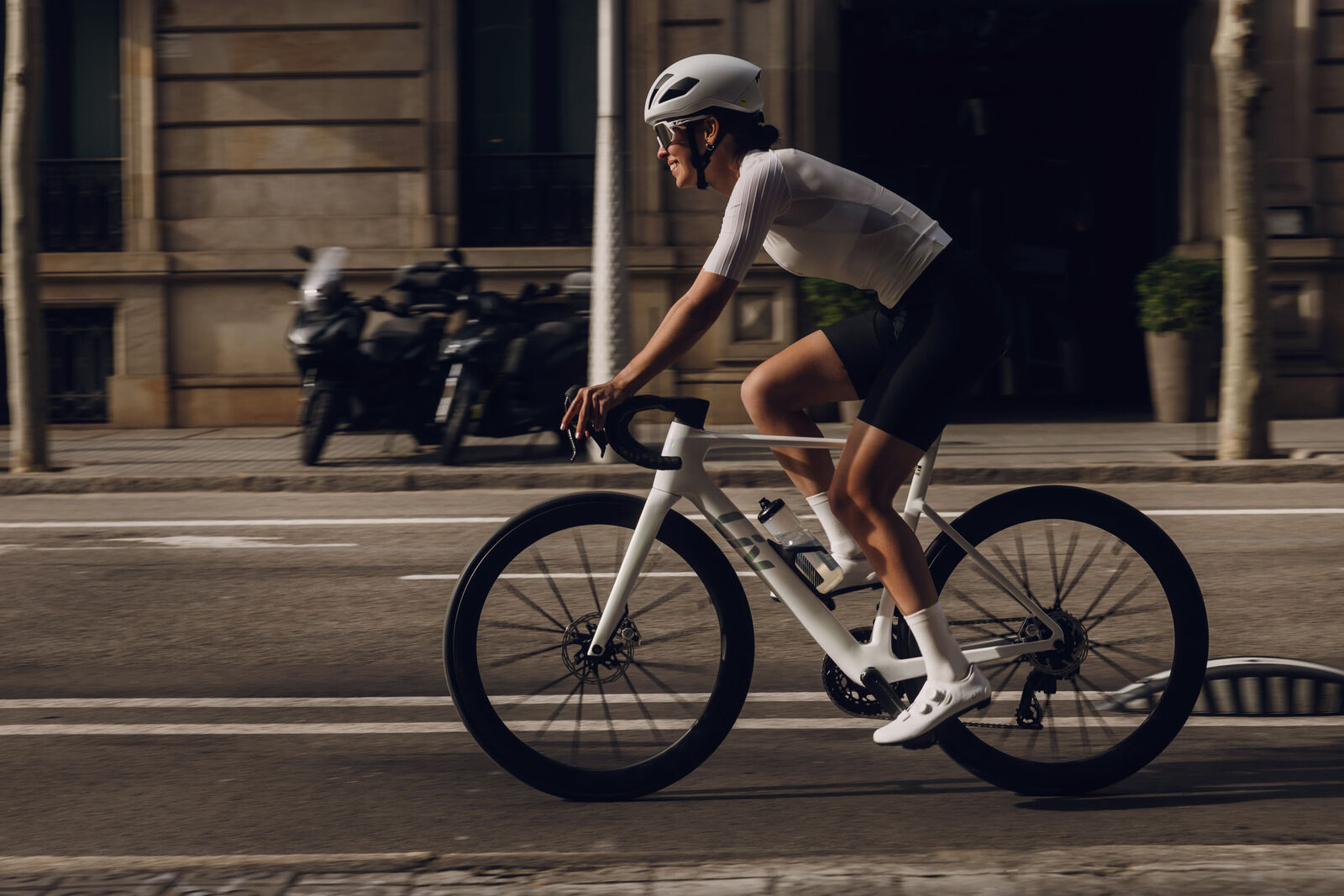 | Style | For WorldTour sprinters and high-speed triathletes who know that every second counts, the EnviLiv Advanced SL was made to overtake competitors, surpass expectations, and transcend reality. Designed with next-level, full-system integration for refined aerodynamics and reduced weight, this is our fastest, most efficient, most ambitious EnviLiv to date.Advanced SL Composite Technology - Professional-grade raw carbon is woven in the Giant Group composite factory using the most advanced engineering and construction methods. Continuous Fiber Technology adds strength and minimizes weight. AeroSystem Shaping Technology - Tubing shapes engineered using computational fluid dynamics (CFD) and wind-tunnel data to optimize each tube shape for superior aerodynamic performance. OverDrive Aero - Found inside the head tube of the all-new EnviLiv range, the D-shaped fork steerer tube and corresponding spacers provide an extremely aerodynamic, easier to service system of internally routed brake and derailleur cables. Tubeless System - Engineered with proprietary Dynamic Balanced Lacing technology, this tubeless ready composite WheelSystem delivers superior efficiency, pinpoint control and comfort. Integrated Seatpost - Designed as a key performance factor in the overall frameset, the integrated seatpost saves up to 45 grams compared to standard composite posts, while improving aerodynamics and adding road-smoothing compliance. Specifications:Sizes XXS, XS, S, M, LColours Prism Pearl Frame Advanced SL-grade composite, 12x142mm thru-axle, integrated seatpost, disc Fork Advanced SL-grade composite, full-composite OverDrive Aero steerer, 12x100mm thru-axle, disc Handlebar Liv Contact SLR 0 Aero Integrated, 31.8mm, 72mm reach, 125mm drop XXS: 340/360mm, XS: 340/360mm, S: 360/380mm, M: 370/400mm, L: 390/420mm Grips Liv Stratus Lite 2.0 Stem Liv Contact SLR 0 Aero Integrated, -10-degree XXS: 80mm, XS: 80mm, S: 90mm, M: 100mm, L: 110mm Seatpost Advanced SL-grade composite, integrated design, -5/+15mm offset Saddle CADEX Amp 155 Shifters SRAM RED AXS HRD Front Derailleur SRAM RED AXS FD-RED-E-E1 Rear Derailleur SRAM RED AXS FD-RED-E-E1 Brakes SRAM RED eTap hydraulic, PaceLine X rotors [F] 160mm, [R] 140mm Brake Levers SRAM RED AXS HRD Cassette SRAM RED, 12-speed, 10x36 Chain SRAM RED E1 CN-RED-E1 Crankset SRAM RED AXS, 35/48 with power meter XXS: 160mm, XS: 165mm, S: 165mm, M: 170mm, L: 170mm Bottom Bracket SRAM DUB ceramic, press fit Rims CADEX Max 50 WheelSystem, [F] 50mm, [R] 50mm Hubs [F] CADEX R3 Aero Hub, CenterLock, 12mm thru-axle, ceramic bearings [R] CADEX R3-C48 Aero Hub, 48T ratchet driver, CenterLock, 12mm thru-axle Spokes CADEX Super Aero Carbon Tyres CADEX Aero, tubeless, 700x28c, folding Extras computer mount, tubeless prepared, two aero bottle cages, 32mm max tire size, UDH compatible |