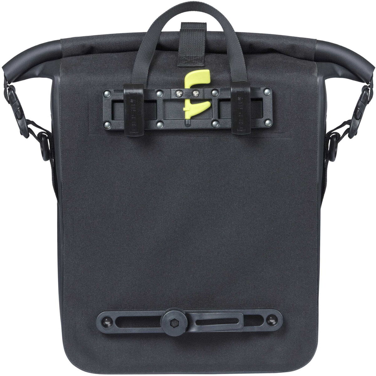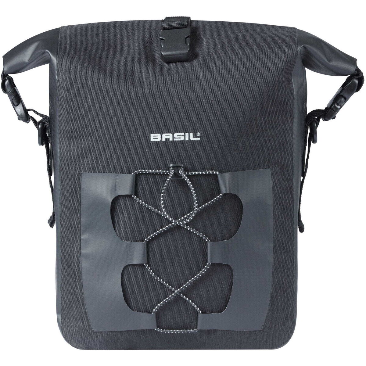 | Description | Navigator Waterproof Medium Single Pannier Bag 12-15L , black Basil Navigator Waterproof M- single pannier bag - 12-15 litre - black Up your sporting game with the Basil Navigator Waterproof. 100% waterproof (IPX 3) and with a capacity of 12 to 15 litres, this single bicycle bag is ideal for taking on the road. The bag is made of a combination of tarpaulin and 600D polyester and has a detachable and adjustable shoulder strap. There is a reflective elastic band on the front of the bag. The bag is closed with a roll-top closure. The closure can be rolled two ways: to the back of the bag or on top of the bag. You can use the snap fasteners flexibly. Whatever you prefer! The bicycle bag attaches to the bicycle with the Basil Hook On system. You can also attach the bag to the bicycle frame with the adjustable hook at the bottom of the bag. Features: |