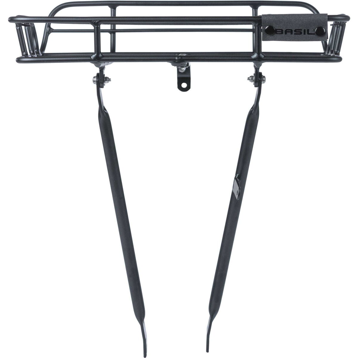 Basil Portland - front carrier - black The Basil Portland Front Carrier is a stylish choice, with an aluminium finish and vintage-style aesthetic. This carrier also features raised edges, preventing your items from tumbling free of your bike frame while you're in transit. The aluminium front carrier is available in matte black, ensuring an effortless complement with almost any frame. Looking for a more tasteful touch for the front of your bike? Then the Basil Portland Front Carrier is definitely for you. Designed to easily accommodate most bicycle bags and baskets, this carrier ensures your storage needs are well met while you ride. The maximum load of this carrier is 10 kilograms, with a design that will fit to bikes measuring between 26 and 28 inches, with installation via a crown mount. Support is provided by the front fork bracket (for 12-13 inch axles). In addition, you can also attach a bicycle lamp to this carrier, allowing you to enjoy your bike in all light conditions. Looking to whip your bike into shape? Choose the Basil Portland Front Carrier for the ideal accompaniment to your bicycle. Looking for more essential products for your favourite bike? Browse the complete collection of carriers, bike bags, baskets and more when you shop online with Basil. Features: