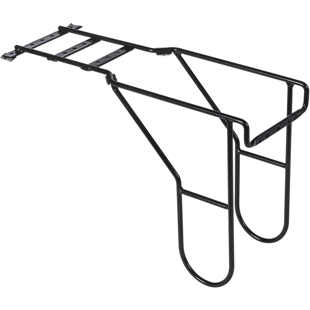 Basil carrier extender – black The Basil Carrier Extender is a luggage carrier extender made of steel with side supports, in a matt black colour. This extension fits on many carriers of different bicycle brands. The self-assembly of this luggage carrier extender, so that double panniers can be combined with a child seat, is very easy. Cycling with groceries or transporting larger goods on the bike? You can do it easily with this luggage carrier extender. The side supports prevent panniers from getting into the spokes of your bike. It's so safe! Of course, this extender comes with the required mounting materials. Is the luggage rack extender in front of your rear light? Don't worry; you can also mount a rear light (50-80mm) on the stand holder. Features: