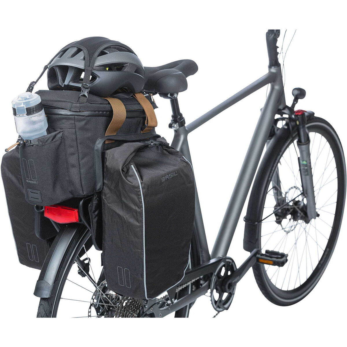 | Description | Miles Trunkbag XL Pro MIK 9-36 litres grey Basil Miles - trunkbag XL Pro MIK - 9-36 litres - grey Are you looking for a bag where everything has been thought of? Then the Basil Miles XL Pro trunkbag is your go-to. This sporty bag is waterproof and has many handy features. It has two waterproof, foldable side pockets, and the top compartment is also expandable. The 9-litre capacity can be expanded to a whopping 36 litres. Furthermore, the bag has an extra insulated pocket for a water bottle and extra dividers so that you can split the main compartment. To keep food and drinks cool, there are two compartments for cooling packs.