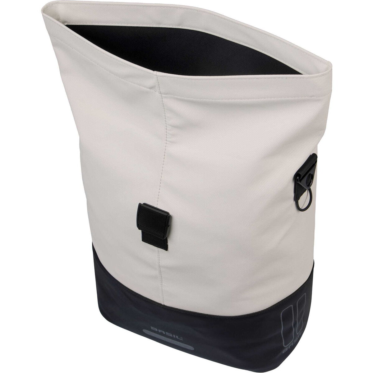 Convenience & functionality The bag offers ample space for everyday items, with a capacity of 14 to 16 litres. The main compartment is secured with a water-resistant fold-over closure and buckle. Inside, there's a zipped pocket for valuables. The removable shoulder strap and the handle make the bag easy to carry off the bike too. Reflective details and a loop for an LED light add extra safety while riding.