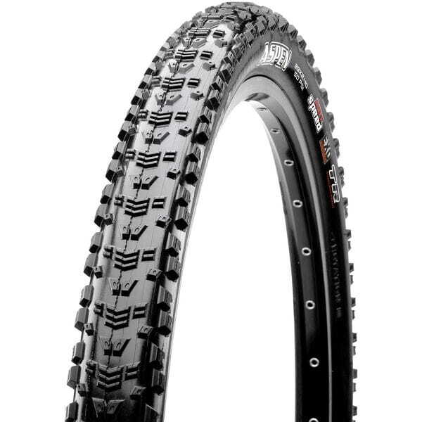 • The Maxxis Aspen pushes the limits of a lightweight XC designed to have a minimal rolling resistance. The Aspen is designed with a high-volume casing to smooth out the roughest roots and rocks, while the duals compounds give optimal traction in the corners. If crossing the finish line first is your top priority, then the Aspen was designed for you