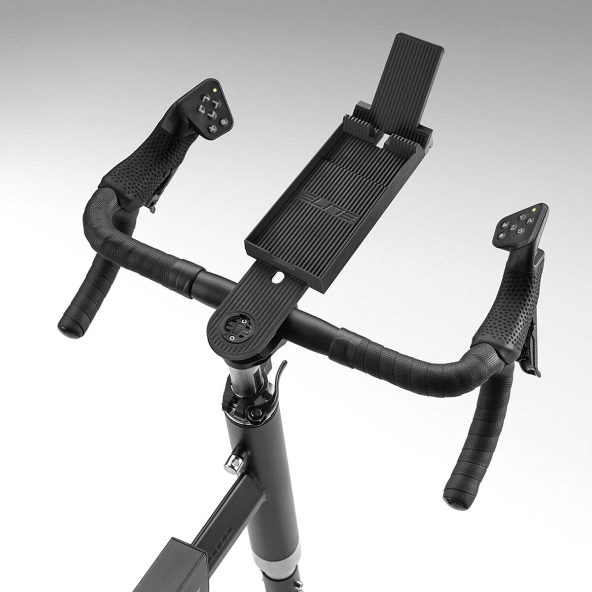 This tablet holder is designed specifically for the Elite Square Smart Frame to keep your device stable and at the ideal viewing angle while riding?perfect for data tracking or streaming content. - Compatible with multiple sizes of phones and tablets, with a maximum load of 3 KG, the angled design reduces glare and enhances viewing comfort