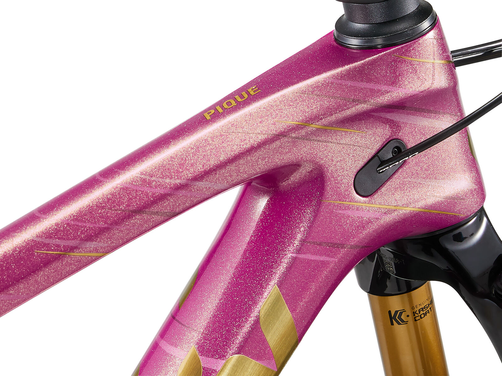 | Style | Cross-country is evolving beyond fast-and-flowy to fast-and-everything-technical terrain, all-day epics, and stage races. The new Pique Advanced 29 is …ready for it. Re-engineered for greater efficiency and control, this XC queen was built to slay switchbacks, rock gardens, and yesterday's PRs.Advanced Composite Technology - Liv's High-Performance Grade raw carbon material is used to produce this frameset in our own composite factory. Using state-of-the-art materials and manufacturing techniques, Liv's Advanced-Grade Composite frames are designed to offer light weight and stiffness with optimal compliance. Advanced Forged Composite Technology - A state-of-the-art, high-pressure moulding process is used to produce complex-shaped carbon fibre components that are lighter, stiffer and stronger than similar aluminium components. OverDrive - Designed to provide precise front-end steering performance, this fork steerer tube technology uses oversized headset bearings (1 1/4" lower and 1 1/8" upper for road, 1 1/2" lower and 1 1/8" upper for mountain) and tapered steerer tube work in conjunction to provide optimal steering stiffness. Tubeless System - Engineered with proprietary Dynamic Balanced Lacing technology, this tubeless ready composite WheelSystem delivers superior efficiency, pinpoint control and comfort. FlexPoint Suspension Technology - A proven " single-pivot" design that uses the flexing action of the chainstay/seatstay junction to produce a lightweight and durable suspension system with 4.7 inches/120mm of rear travel. |