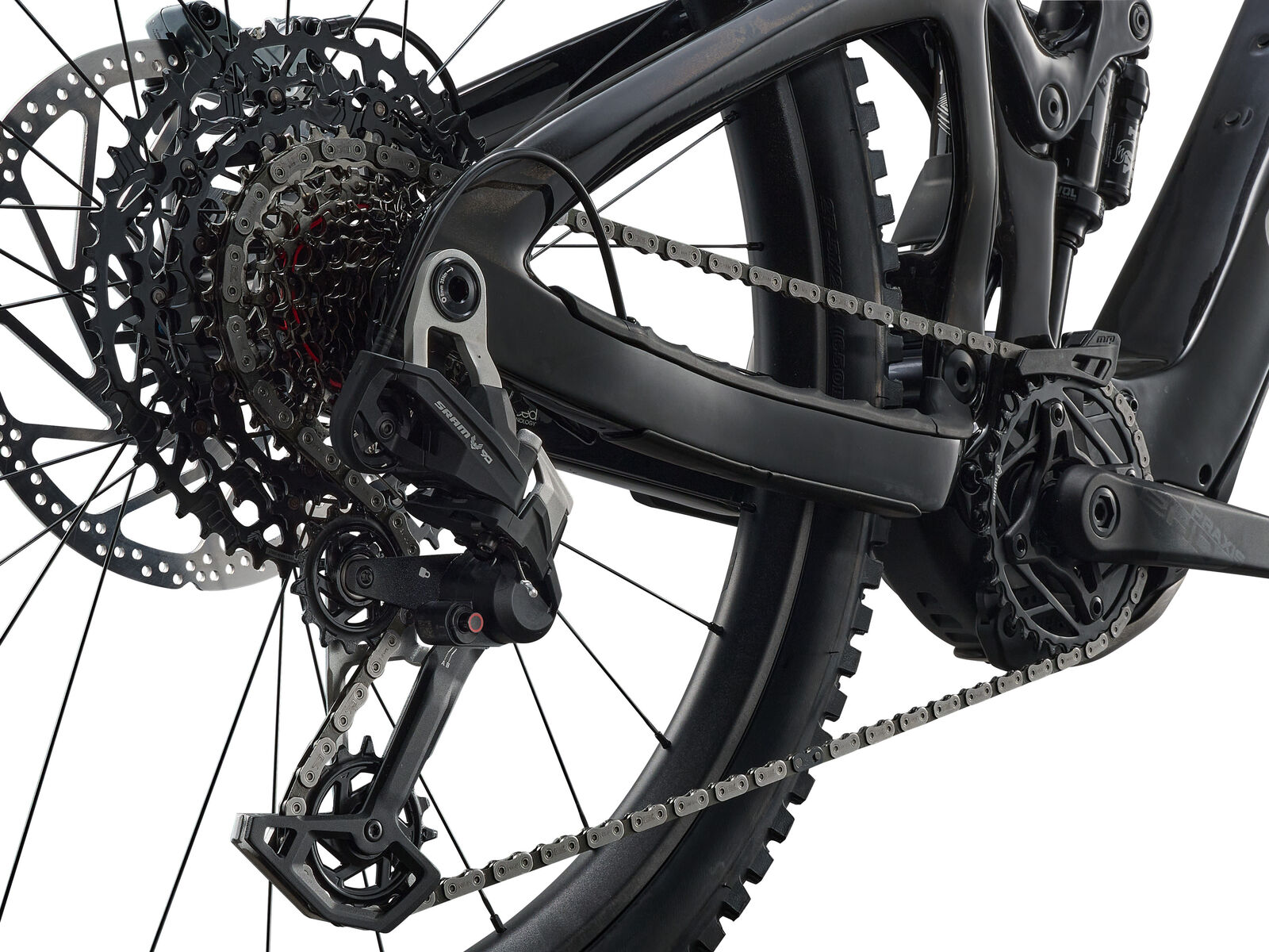 Style | Everything about the new Reign Advanced E+ is designed to make it the best descending E-MTB ever. From the bottomless feeling Maestro suspension with 170mm of rear travel (and a 180mm fork) to the punchy new SyncDrive Pro 3 motor and its lightweight, stiff and ultra-adjustable composite frame. We added a titanium skid plate, robust frame protection, and an innovative bash-guard with an elastomer damper-so you can send it with confidence on the most rugged, technical terrain.Advanced Composite Technology - Giant's High Performance Grade raw carbon material is used to produce this custom frame material in our own composite factory with a high stiffness-to-weight ratio. The front triangle of these framesets is assembled and molded as one continuous piece in a proprietary manufacturing process called Modified Monocoque Construction. Smart Assist - All SyncDrive motors have Smart Assist technology, which adjusts the support to match the rider's needs. By using information from multiple sensors, both rider input and terrain feedback are used to determine the optimal amount of pedaling assistance. SyncDrive is the only e-bike system that utilizes both rider input and terrain feedback. It gives you a smooth, natural riding experience with ample power when you need it, while also conserving power when you don't need as much. Flip Chip - Maestro 3 - This all-new technology allows riders to quickly adjust the geometry and choose a rear wheel size (29-inch or 27.5-inch) for their riding style and terrain. It's available on select Maestro-equipped mountain bikes. The adjustment affects head tube and seat tube angles, bottom bracket height, and rear-wheel size using eccentric flip chip hardware located on the upper rocker arm of the rear suspension. Maestro Suspension Technology - Four strategically positioned pivot points and two linkages all work together to create a single floating pivot for the most active, efficient and independent suspension system on the trail. E+ System - E+ System combines electric power with human power to produce a smart, natural and powerful E-bike riding experience. It's an integrated group of technologies that includes our RideControl control units, EnergyPak battery systems and SyncDrive motors. For more information, check out the link below. RideControl Ergo 4 - The new RideControl Ergo 4 builds on the previous generation Ergo 3 with a sleek, grip-integrated 3-button remote control unit. It blends seamlessly with your handlebar and grips and has a larger, more concave shape and improved tactile feedback. Energypak 560 - Integrated 560Wh battery pack powers a 48-volt system that produces more power with less heat and stress on the battery cells. Exceptionally durable, it delivers up to 2300 full charge cycles-more than any other E-bike battery-and recharges rapidly, reaching 80% battery capacity in as little as two hours. EnergyPak Plus 280 - This range extender can boost total capacity by 280Wh. This gives you the choice-lighter weight for everyday rides or longer range for epic ride days. SyncDrive Pro 3 - Powerful new 48-volt system delivers up to 800 watts of peak power while producing less heat and motor stress-improving efficiency to give you more peak power for longer. You can tune and adjust torque and support levels to match your ride. Choose full power for steep climbs, or dial it back to save energy on long rides. Specifications:Motor Giant SyncDrive Pro 3, 90Nm PedalPlus 6-sensor technologyController Giant RideControl Ergo 4 Display Giant RideControl GO Lux Battery Giant EnergyPak Smart 560Wh, integrated, 48V Charger Giant EnergyPak smart charger 4A, 48V Connectivity Aegis Tire Checker included in RideControl display Sizes S, M, L, XL Colours Mercury/Carbon Smoke Frame Advanced-grade composite frame, Advanced forged composite upper rocker, 170mm Maestro suspension system Fork Fox 38 Performance Elite, 29", 180mm travel, Grip X2 damper, 44mm offset, KaboltX 110x15mm Boost axle Shock Fox Float X Performance, EVOL Large Volume sleeve, 205x65mm Trunnion mount, custom tuned Handlebar Giant Contact SL TR35, 35x800mm, 35mm rize, Up: 5a?degree Back: 9a?degree Grips Giant Tactal Pro-E, tapered design, 135mm Ø28~30mm (S/M) 142mm Ø29~32mm (L/XL) Stem Giant Contact SL 35 Seatpost Giant Contact Switch adjustable dropper, 30,9mm (S:110~140, M:140~170,L/XL: 170~200) MMX remote Saddle Giant Romero, Neutral Shifters SRAM Eagle 90 Transmission Single Click Rear Derailleur SRAM 90 Eagle Transmission Brakes TRP DH-R EVO, hydraulic disc, E2.3 caliper, 4-piston, 220mm [F/R] Brake Levers TRP DH-R EVO Cassette SRAM Eagle Transmission, 10-52T, 12-speed Chain SRAM 70 Eagle Transmission Flattop Powerlink 12-speed Crankset SRAM Eagle Transmission 36T chainring Praxis e-HD forged crankarm set (Q-Factor:168mm, Length: 160mm) Rims Giant e-TRA, Hookless, 30mm inner width, Hollow Side-Wall Design for improved strength and flat protection, 2~4psi lower air pressure recommended Hubs Giant e-TRA, E-Drive 260Nm 6-Pawl Driver, 72T engagement, 15x110mm [F] 12x148mm [R], e-bike optimized Spokes Giant TRA, Dynamic Balanced Lacing Tyres Maxxis Assagai 29x2.5" foldable, tubeless, EXO+ 3C MaxxGrip[F] Maxxis MINION DHR II 27.5x2.4" WT foldable, Tubeless, DoubleDown, 3C MaxxGrip Compound [R] Extras Aegis Tire Checker Lighting Optional: - Giant Recon series e-bike lights available and direct connectable |