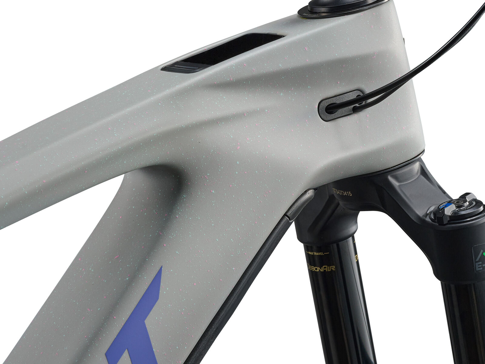 Style | Everything about the new Reign Advanced E+ is designed to make it the best descending E-MTB ever. From the bottomless feeling Maestro suspension with 170mm of rear travel (and a 180mm fork) to the punchy new SyncDrive Pro 3 motor and its lightweight, stiff and ultra-adjustable composite frame. We added a titanium skid plate, robust frame protection, and an innovative bash-guard with an elastomer damper-so you can send it with confidence on the most rugged, technical terrain.E+ System - E+ System combines electric power with human power to produce a smart, natural and powerful E-bike riding experience. It's an integrated group of technologies that includes our RideControl control units, EnergyPak battery systems and SyncDrive motors. For more information, check out the link below. Smart Assist - All SyncDrive motors have Smart Assist technology, which adjusts the support to match the rider's needs. By using information from multiple sensors, both rider input and terrain feedback are used to determine the optimal amount of pedaling assistance. SyncDrive is the only e-bike system that utilizes both rider input and terrain feedback. It gives you a smooth, natural riding experience with ample power when you need it, while also conserving power when you don't need as much. Flip Chip - Maestro 3 - This all-new technology allows riders to quickly adjust the geometry and choose a rear wheel size (29-inch or 27.5-inch) for their riding style and terrain. It's available on select Maestro-equipped mountain bikes. The adjustment affects head tube and seat tube angles, bottom bracket height, and rear-wheel size using eccentric flip chip hardware located on the upper rocker arm of the rear suspension. Maestro Suspension Technology - Four strategically positioned pivot points and two linkages all work together to create a single floating pivot for the most active, efficient and independent suspension system on the trail. Advanced Composite Technology - Giant's High Performance Grade raw carbon material is used to produce this custom frame material in our own composite factory with a high stiffness-to-weight ratio. The front triangle of these framesets is assembled and molded as one continuous piece in a proprietary manufacturing process called Modified Monocoque Construction. RideControl Ergo 4 - The new RideControl Ergo 4 builds on the previous generation Ergo 3 with a sleek, grip-integrated 3-button remote control unit. It blends seamlessly with your handlebar and grips and has a larger, more concave shape and improved tactile feedback. Energypak 560 - Integrated 560Wh battery pack powers a 48-volt system that produces more power with less heat and stress on the battery cells. Exceptionally durable, it delivers up to 2300 full charge cycles-more than any other E-bike battery-and recharges rapidly, reaching 80% battery capacity in as little as two hours. EnergyPak Plus 280 - This range extender can boost total capacity by 280Wh. This gives you the choice-lighter weight for everyday rides or longer range for epic ride days. SyncDrive Pro 3 - Powerful new 48-volt system delivers up to 800 watts of peak power while producing less heat and motor stress-improving efficiency to give you more peak power for longer. You can tune and adjust torque and support levels to match your ride. Choose full power for steep climbs, or dial it back to save energy on long rides. Specifications:Motor Giant SyncDrive Pro 3, 90Nm PedalPlus 6-sensor technologyController Giant RideControl Ergo 4 Display Giant RideControl GO Lux Battery Giant EnergyPak Smart 560Wh, integrated, 48V Charger Giant EnergyPak smart charger 4A, 48V Connectivity Aegis Tire Checker included in RideControl display Sizes S, M, L, XL Colours Moon Dust Frame Advanced-grade composite frame, Advanced forged composite upper rocker, 170mm Maestro suspension system Fork RockShox Zeb select, 29", 180mm travel, Charge RC damper, 44mm offset, Maxle Stealth, 110x15mm Boost axle Shock Fox Float X Performance, EVOL Large Volume sleeve, 205x65mm Trunnion mount, custom tuned Handlebar Giant Contact SL TR35, 35x800mm, 35mm rize, Up: 5a?degree Back: 9a?degree Grips Giant Tactal Pro-E, tapered design, 135mm Ø28~30mm (S/M) 142mm Ø29~32mm (L/XL) Stem Giant Contact SL 35 Seatpost Giant Contact Switch adjustable dropper, 30,9mm (S:110~140, M:140~170,L/XL: 170~200) MMX remote Saddle Giant Romero, Neutral Shifters Shimano Deore Rear Derailleur Shimano Deore, 12-speed shadow+ Brakes Shimano SLX, hydraulic disc, 4-piston, 220mm [F/R] Brake Levers Shimano SLX Cassette Shimano Deore, 10-51T, 12-speed Chain Shimano Deore 12-speed Crankset Praxis 36T Cold Forged 4130 premium steel Praxis e-HD forged crankarm set (Q-Factor:168mm, Length: 160mm) Rims Giant AM30, Tubeless ready, 30mm inner width, 29" [F] 27.5" [R] Hubs Giant E-Drive 260Nm, 72T engagement, boost, 15x110mm[F] 12x148mm[R], e-bike optimized Spokes Sapim Race [F] E-Lite [R], e-bike optimized Tyres Maxxis Assagai 29x2.5" foldable, tubeless, EXO+ 3C MaxxGrip[F] Maxxis MINION DHR II 27.5x2.4" WT foldable, Tubeless, DoubleDown, 3C MaxxGrip Compound [R] Extras Aegis Tire Checker Lighting Optional: - Giant Recon series e-bike lights available and direct connectable |