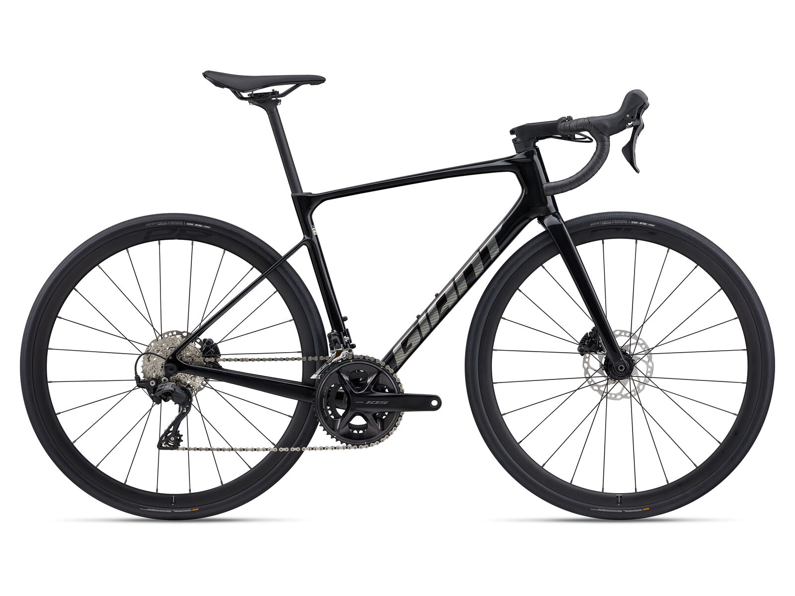 Style | With effortless efficiency and quiet compliance, this lightweight endurance road machine helps you ride stronger and longer. The composite frame and purpose-built components smooth out rough roads and minimize fatigue. Advanced Composite Technology - Giant's High Performance Grade raw carbon material is used to produce this custom frame material in our own composite factory with a high stiffness-to-weight ratio. The front triangle of these framesets is assembled and molded as one continuous piece in a proprietary manufacturing process called Modified Monocoque Construction. Compact Road Design - Introduced by Giant with the professional Team ONCE in the 1990s, Compact Road revolutionized the look and feel of high-performance road bikes forever. A downward sloping toptube (from the headtube to the seattube) creates smaller front and rear triangles for a lighter, stiffer bike. It also makes it easier for riders of all sizes to have a perfect fit. D-Fuse Technology - The D-Fuse seatpost and handlebar were designed to function as a system, absorbing road shocks and vibrations so you can ride farther, faster. Tubeless System - Fewer flat tires. Greater traction. Less rolling resistance and a smoother, faster ride. Giant's Tubeless System makes it easier than ever to experience all these benefits. OverDrive Aero - Found inside the head tube of the Defy, Propel and TCR ranges, the D-shaped fork steerer tube and corresponding spacers provide an extremely aerodynamic, easier to service system of internally routed brake and derailleur cables. Specifications:Sizes XS, S, M, M/L, L, XLColours Abyss Black/Chrome, Spruce Frame Advanced-grade Composite, 12x142mm thru-axle, disc Fork Advanced-grade Composite, full-composite OverDrive steerer, 12x100mm thru-axle, disc Handlebar Giant Contact SL D-Fuse XS:404/380mm, S:404/380mm, M:424/400mm, M/L:424/400mm, L:444/420mm, XL:444/420mm Grips Stratus Lite 3.0 Stem Giant Contact AeroLight XS:80mm, S:90mm, M:100mm, M/L:100mm, L:110mm, XL:110mm Seatpost Giant D-Fuse, composite, 14mm offset Saddle Giant Approach Shifters Shimano 105 Front Derailleur Shimano 105 Rear Derailleur Shimano 105 Brakes Shimano 105 hydraulic, Shimano SM-RT64 rotors [F]160mm, [R]160mm Brake Levers Shimano 105 Cassette Shimano 105, 11x36 Chain KMC X12L-1 Crankset Shimano 105, 34/50 XS:165mm, S:165mm, M:170mm, M/L:170mm, L:172.5mm, XL:172.5mm Bottom Bracket Shimano, press fit Rims Giant P-R1 Disc wheelset, alloy, [F]25mm, [R]25mm Hubs Giant alloy, 12mm thru-axle Spokes Sapim Tyres Giant Gavia Fondo 1, tubeless, 700x32c (33.5mm), folding Extras tubeless prepared, 40mm max tire size Max Tyre Clearance 40mm |