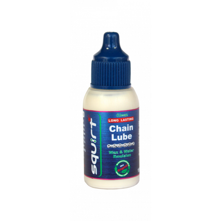 Squirt is a unique chain lubricant â€" it contains waxes and water in emulsion form that stays clean, lasts long and extends drive train life.