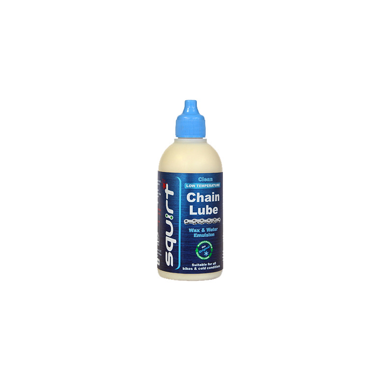 Squirt Low-Temp Chain Lube is a low temperature lube for use in very cold conditions. Lube that thickens or hardens in cold conditions causes more drag in the drive train, resulting in less efficient usage of power. Squirt Low Temp Lube has a modified congealing point, allowing it to lube optimally in these temperatures, keeping your chain quiet and clean, with long lasting durability.