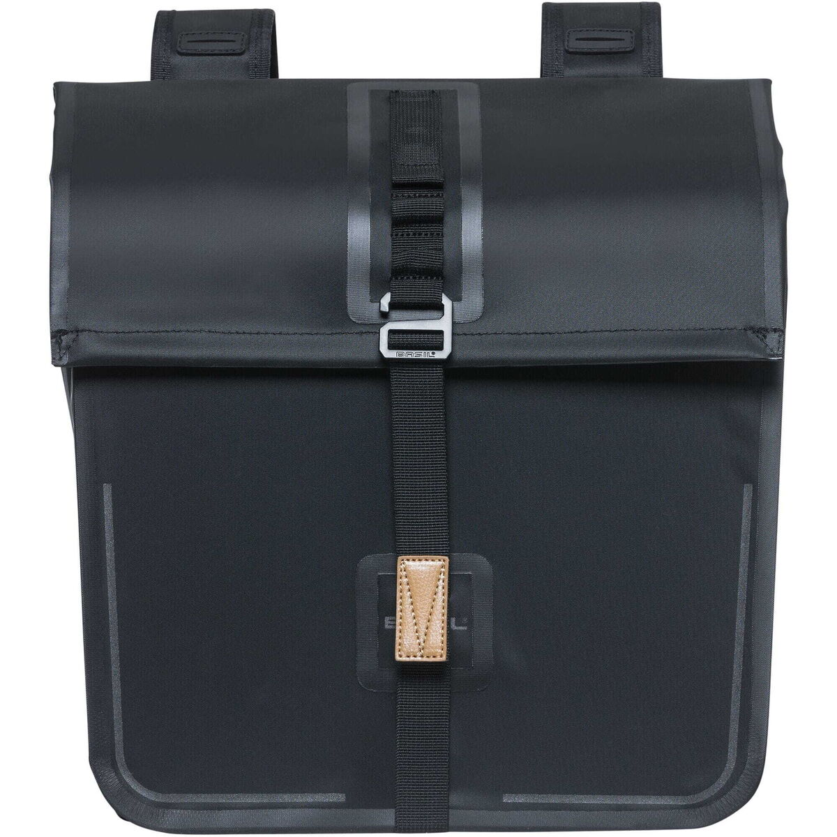 | Description | Basil Urban Dry Double Bag 50L matt black The Basil Urban Dry Double Bag is a stylish choice of bicycle storage, made from hard-wearing polyester and suitable for all manner of cycling journeys. Looking for a durable bike bag to store your groceries as you return from the store? This will stand up to the task. Planning a cycling holiday and need some extra luggage? The Basil Urban Dry Double Bag is on hand to help. With a generous volume of 50 litres, there's no shortage of space here. Suitable for use with both regular bikes and e-bike frames, this bag is made from waterproof polyester and comes with welded seams for optimal protection against rainfall and the elements. Each half of the bag closes securely with zip fastening, keeping contents in place during every step of your journey. This bag is also a stylish choice, with faux leather accents giving it a designer-level finish. With the Universal Bridge system, this bag easily attaches to your rear luggage carrier and is suitable for use with systems including MIK, Racktime and i-Rack / Carrymore. Adapter plates are not included and need to be purchased separately. Want to mount onto a MIK interface? For this SKU you will require the MIK product mounting adaptor plate 2.0 (product code BAS70173) Features:
