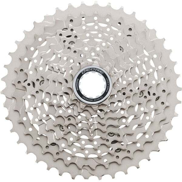 - Deore M4100 10-Speed Dyna-Sys cassette featuring light weight minimal design