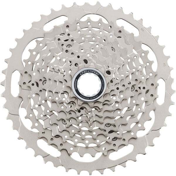 - Deore M4100 10-Speed Dyna-Sys cassette featuring light weight minimal design sprocket carrier