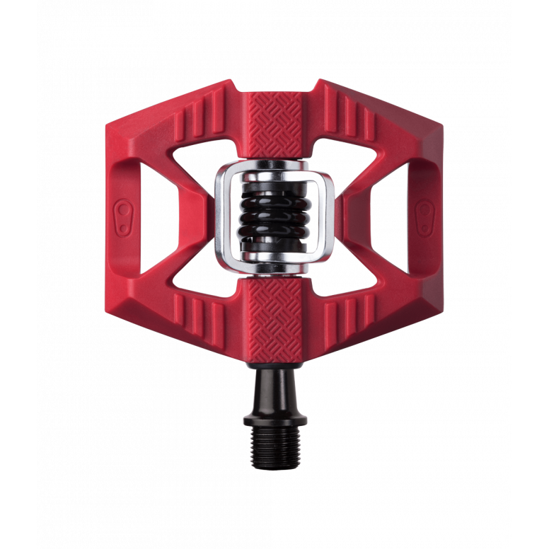 Choose to ride flat or clipped in. The new double shot is crankbrothers hybrid pedal designed half flat / half clip-in. - Moulded traction pins and diamond plate area provide grip and support.
